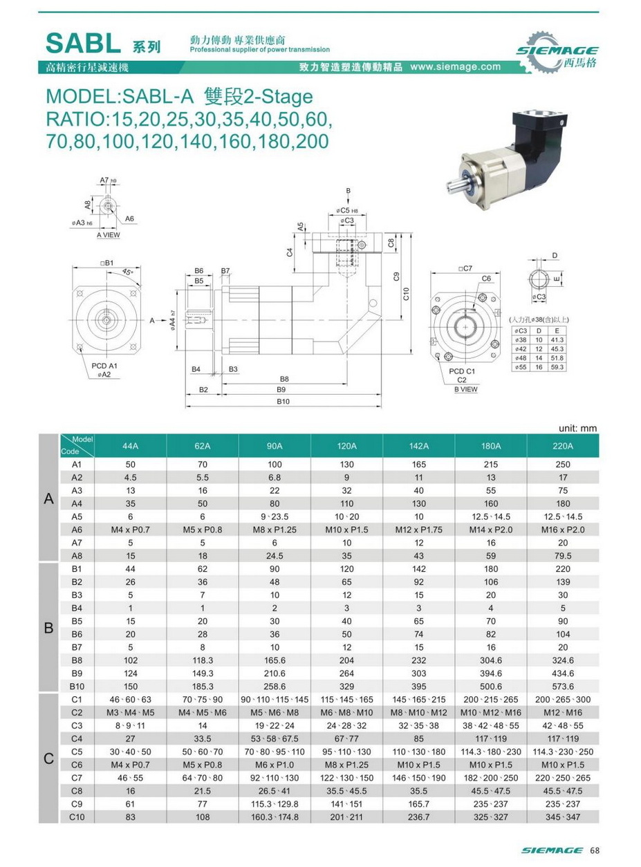 減速比:15/20/25/30/30/35/40/50/60/70/80/100/120/140/160/200