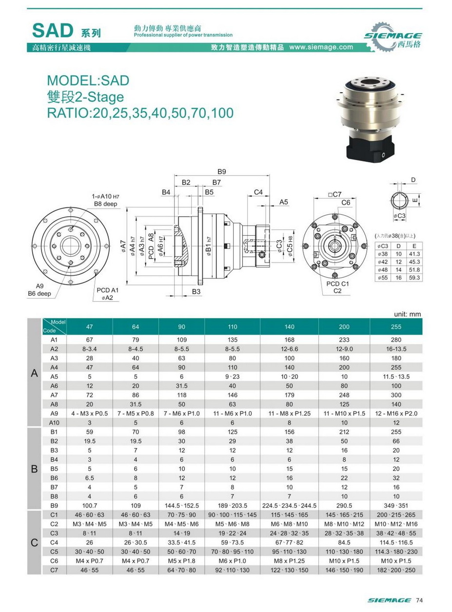 雙段減速電機 : 20 / 25 / 35 / 40 / 50 / 70 / 100