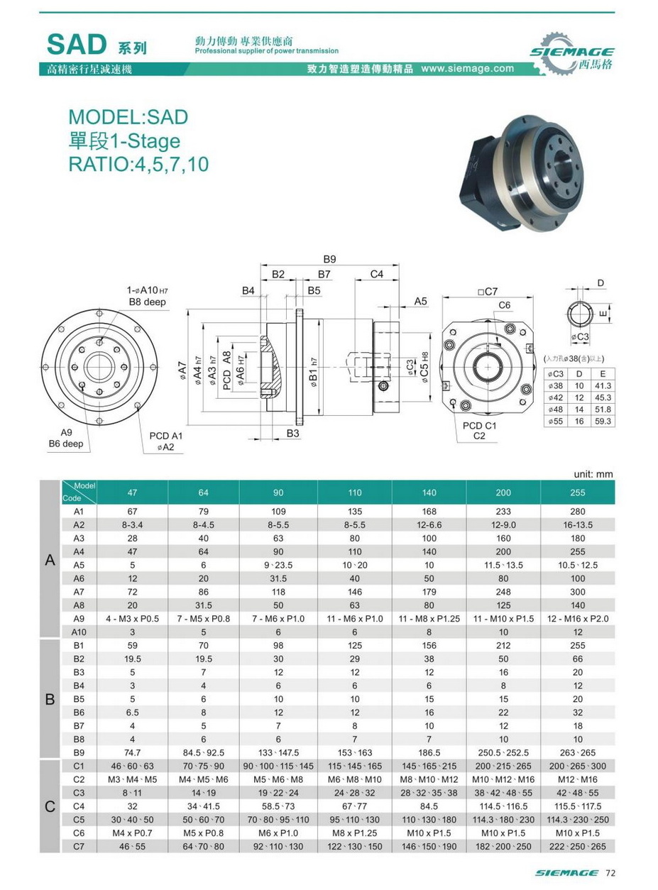 單段減速電機 : 4 / 5 /6/ 7 /8/ 10